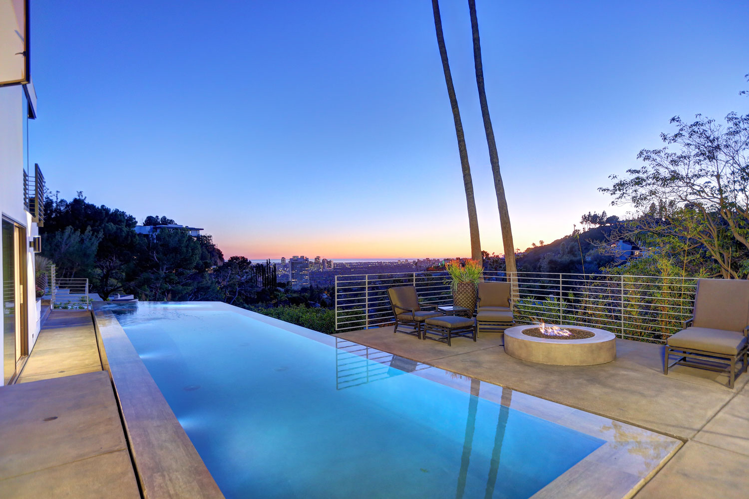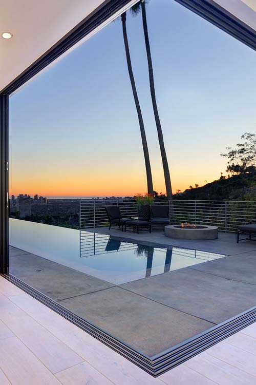 Darryl Wilson Designs' newest Architectural masterpiece with jetliner view and infinity pool is a show stopper! Finished and furnished with the finest of everything. Fully retractable doors in the living and dining room open the whole house up to the unobstructed city and ocean views. This property is seriously turnkey and for your most discriminating clients. Privacy, security, amazing view, grassy side yard, plenty of parking for guests and there are no homes across the street from this home. This home has not been lived in since its multi million dollar renovation. Miele kitchen, drop down projector in living room, outdoor kitchen, limestone baths and gorgeous wide plank white floors. Top of the line furniture is accented by a world class art collection. No expense was spared. Lower doheny!!!